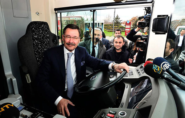 Mayor Melih said: "Ankara City already has one of the greenest and also the youngest bus fleets in the world. With 1,300 CNG-powered buses we hold a record in the world. This first electric powered bus will be in service between Ku?ulu Park and Alt?npark for one month. If the bus is also approved by the public after the testing period we will put out a tender and buy electric buses to be used in capital city's transportation system".