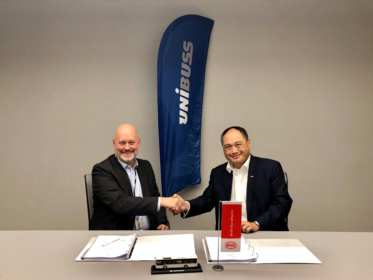 The fleet order is being ratified at a special contract signing ceremony today (7th November) in Oslo, with Øystein Svendsen, CEO at Unibuss, and Isbrand Ho, Managing Director at BYD Europe, in attendance. The sigining takes place at the 2019 Zero Emission Conference which will include presentations from Norway’s Prime Minister, Erna Solberg, and the Opposition Leader, Jonas Gahr Støre. Isbrand Ho will also deliver a keynote presentation during the conference.