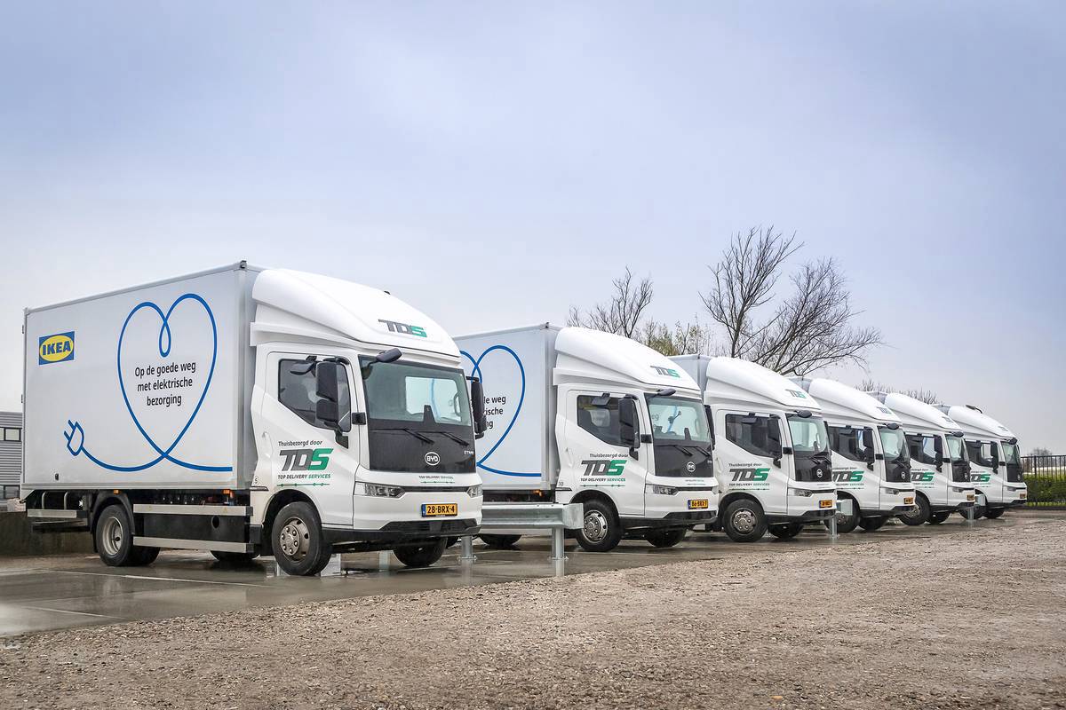 Breda, the Netherlands – Top Delivery Services (TDS) has made a major commitment to emission-free city distribution following the purchase of 10 BYD ETM6 pure-electric eTrucks in collaboration with Bluekens EV, strategic partner and BYD eTruck dealer for the Netherlands. The vehicles will be used specifically for eco-friendly zero-emission delivery services of IKEA in Amsterdam.